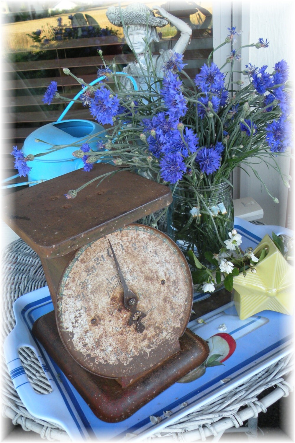 You may have seen these other pieces incorporated into my fall and summer porch decor, the rusty scale (I love this, it fits so well as a decorating element))